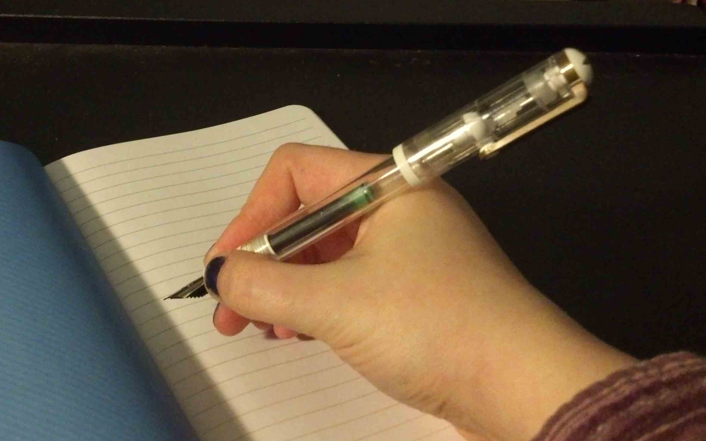 Because it does write with a relatively fine line, it can be hard to get started sometimes, and doesn’t do too well if the ink starts to dry out and thicken. Also you won’t get too much color variegation in inks that have it due to the thin line. It is however, very good at writing in pocket moleskines and other narrow writing spaces.