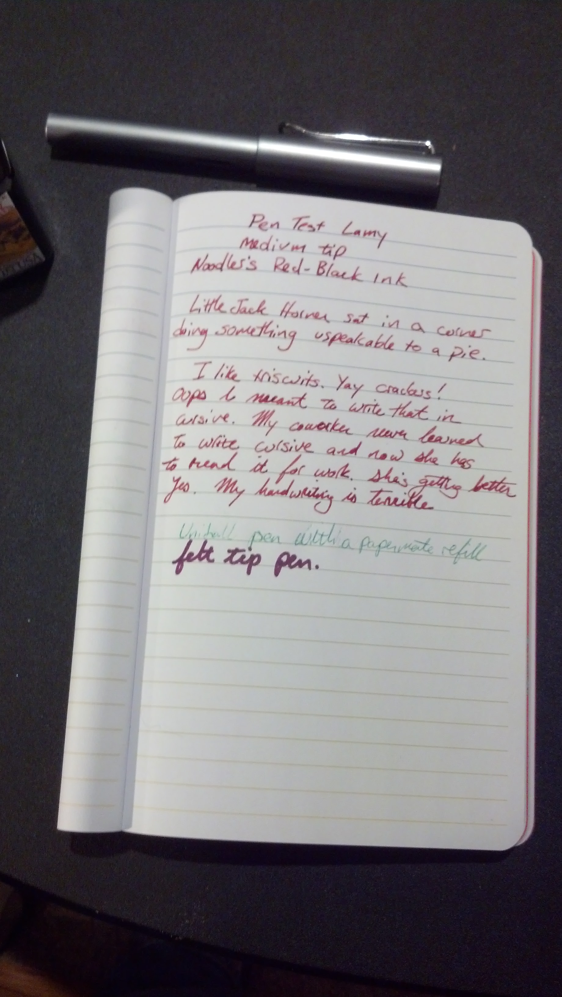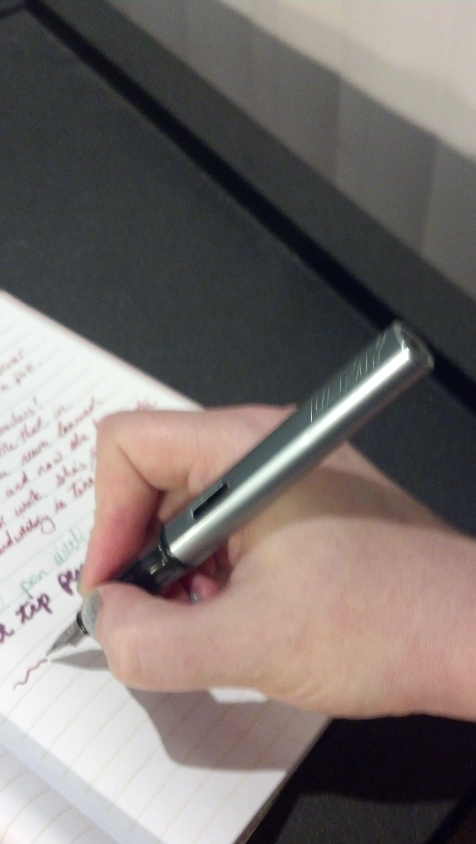 I love the look and feel of this pen. I wish it was just a tiny bit lighter and thinner (I suspect I’d like the Lamy Safari). I did carry this as my every day pen for awhile (hence the dents and scratches) but prefer to use less expensive pens for that now.