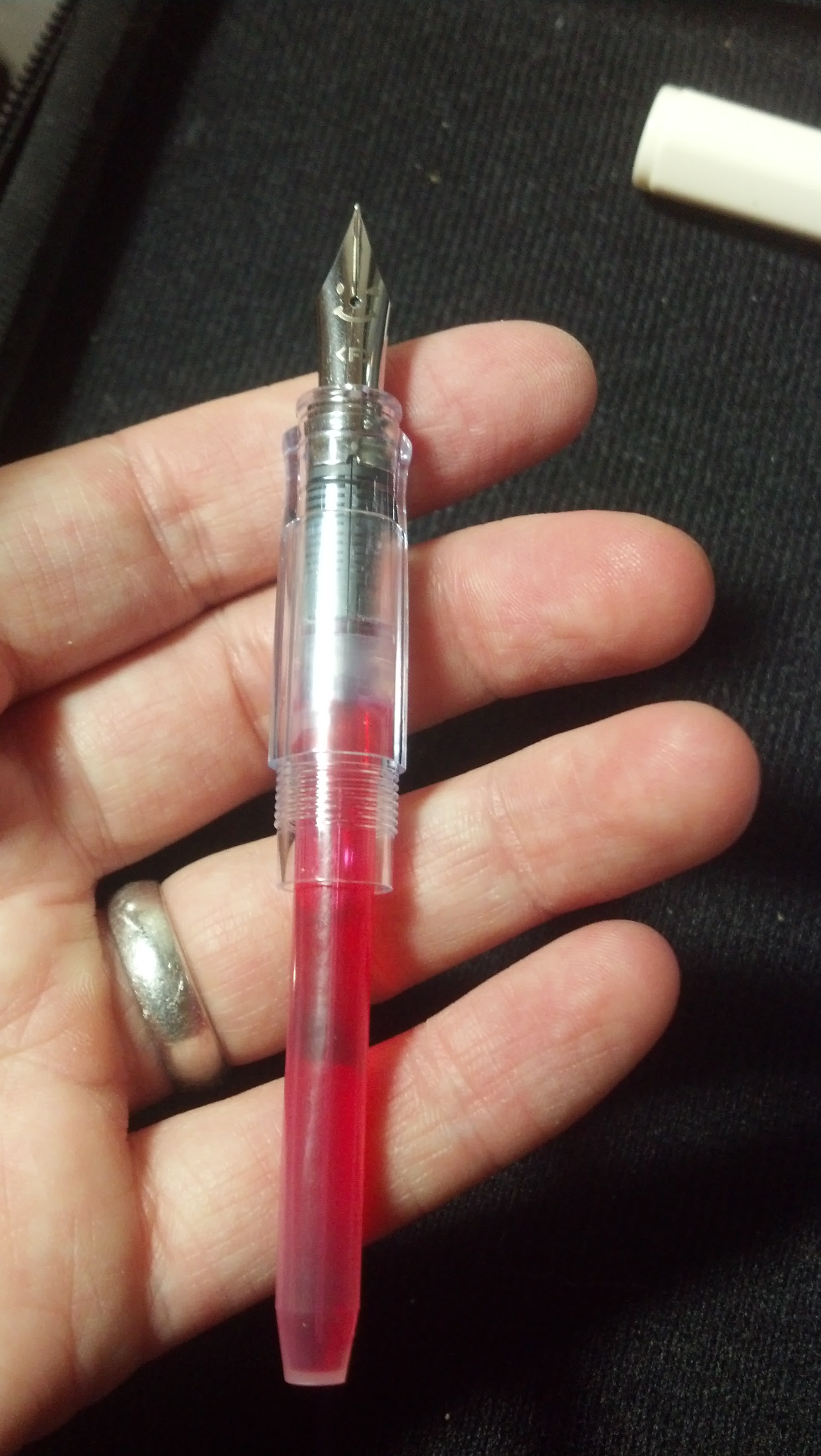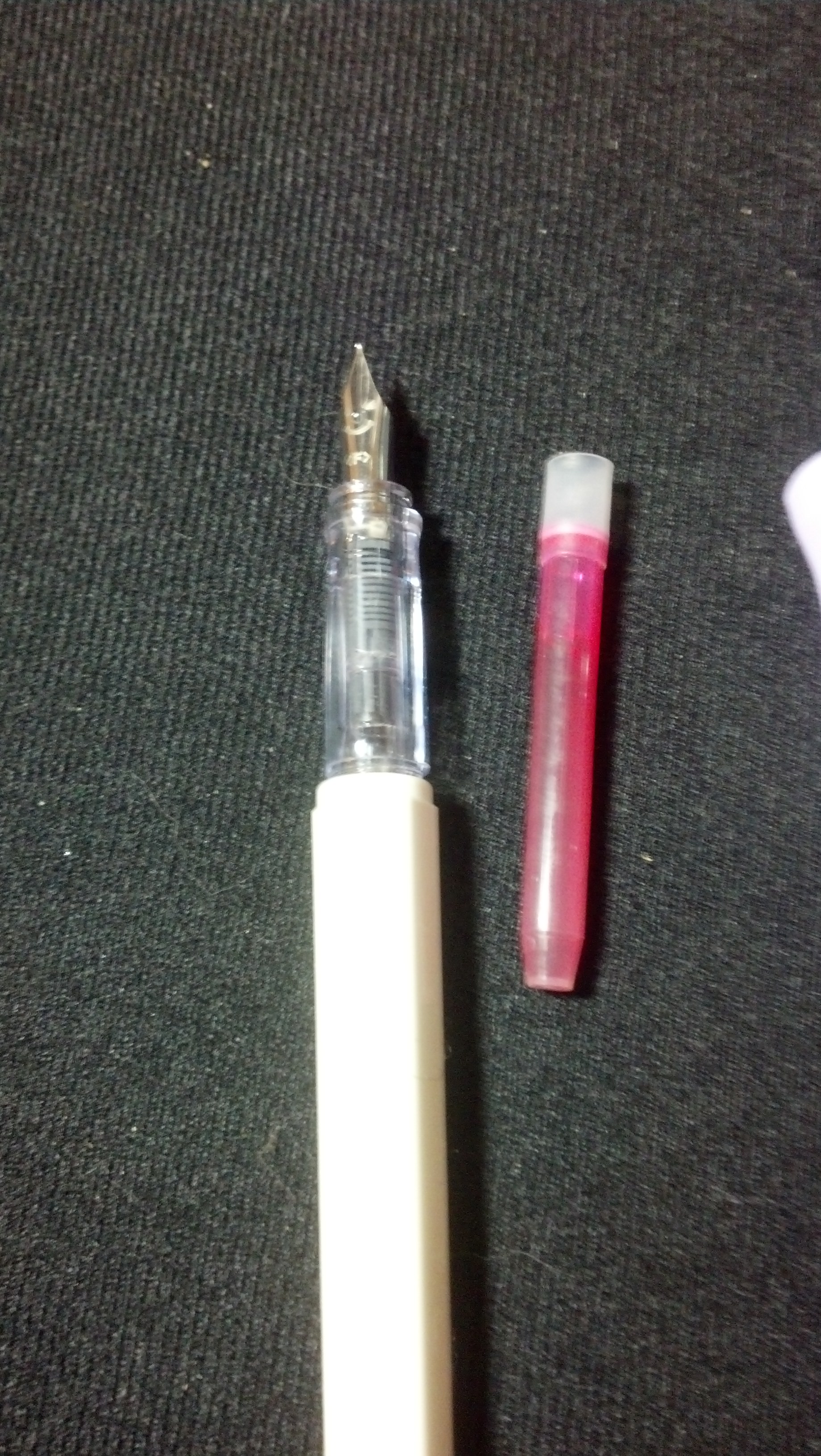 I can’t read Japanese but some of you can, so here’s the directions. Hmm, well I’m not a fan of writing in black ink… let’s see what colors of Pilot cartridges I bought… Ooo Pink!