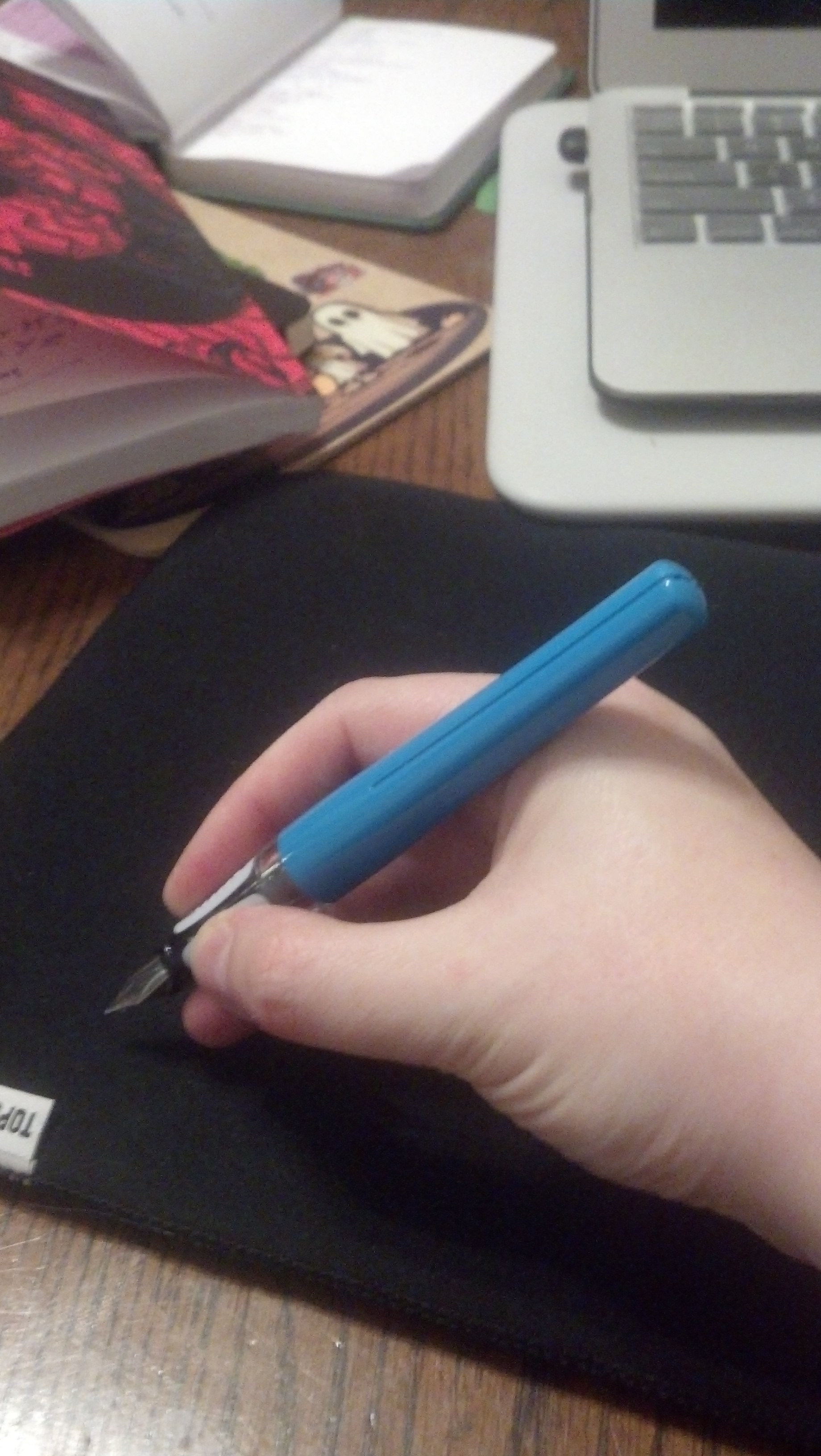 My handwriting is especially bad this week. It isn’t the finest nib but it works great in my writing notebook.