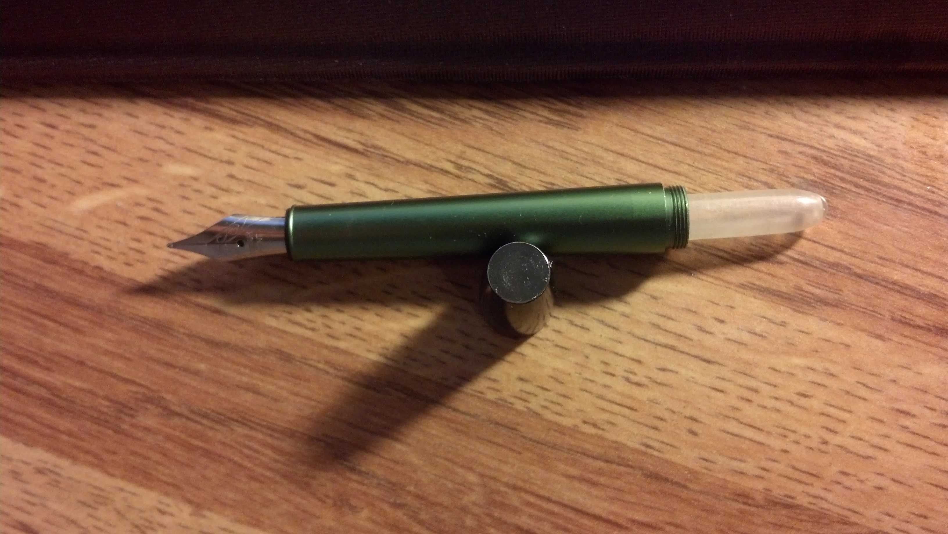 The pen body is a very light aluminum and it is by far not only the smallest pen in length but in girth. It feels more like holding a pencil than a fountain pen in that fashion.