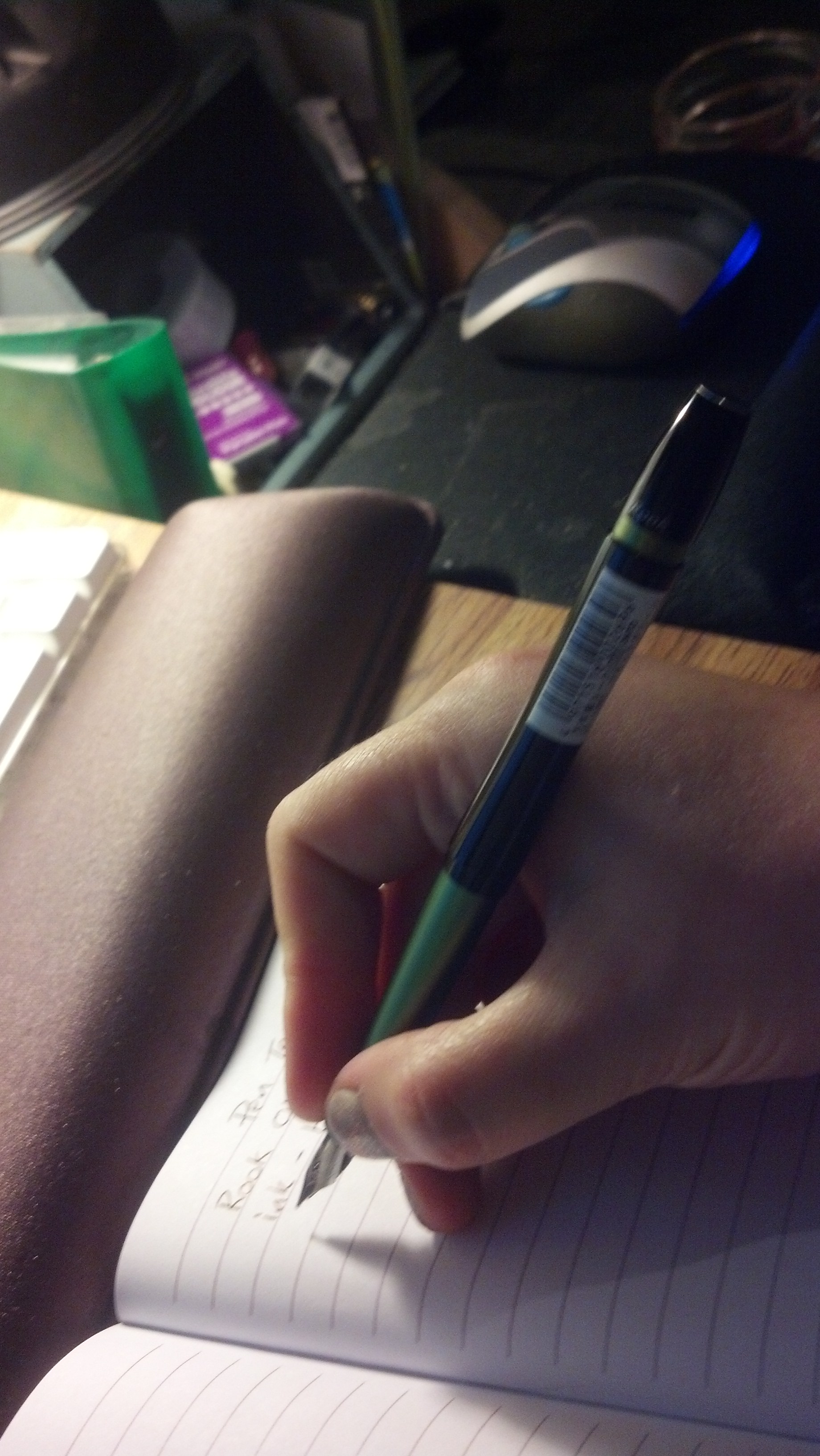 My battle cry when writing is: “We’ll fix it in post!” I used work in video production, and it’s something you say when there’s a snafu but for whatever reason you’re not going to re-shoot it. It’s a more professional way to urge people forward to the next task. If you want to finish a project, you have to move forward to then end– then you can fix it. It is A LOT easier to cut the path you want in a mess of words that aren’t quite right than it is to lay them like tile. Unlike four hours of footage no one had a mic plugged into the camera, you really CAN fix everything in post in writing. For me, writing in pen is the way I keep kicking my own ass forward.