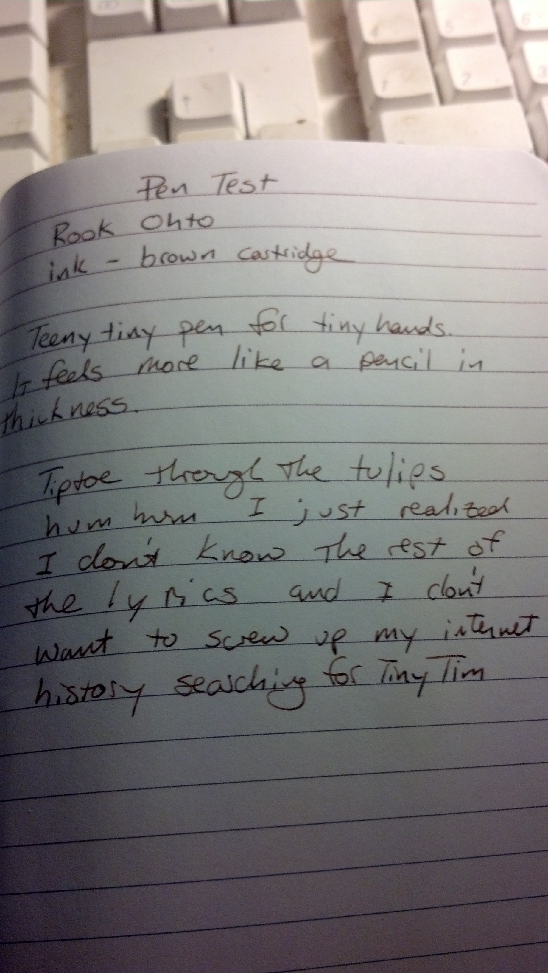 You know when the “for size” picture features a dime the pen is going to be small. The Ohto Rook is the smallest pen I own.
